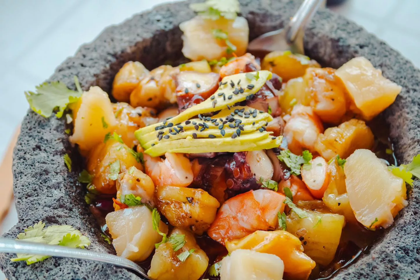 Tostadas de mariscos (callo, atún, camaraón,pulpo)