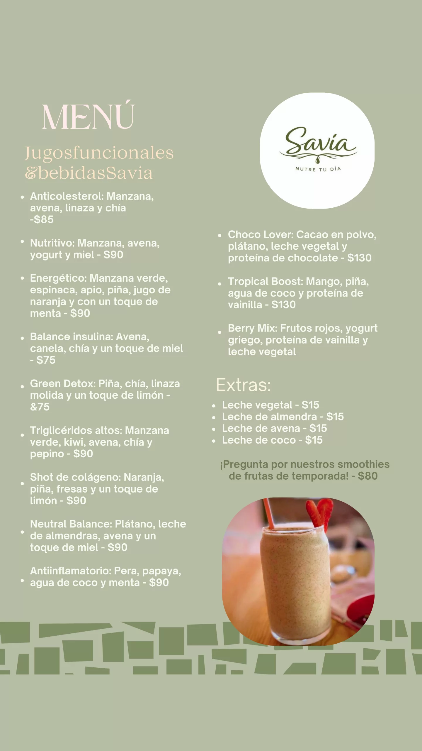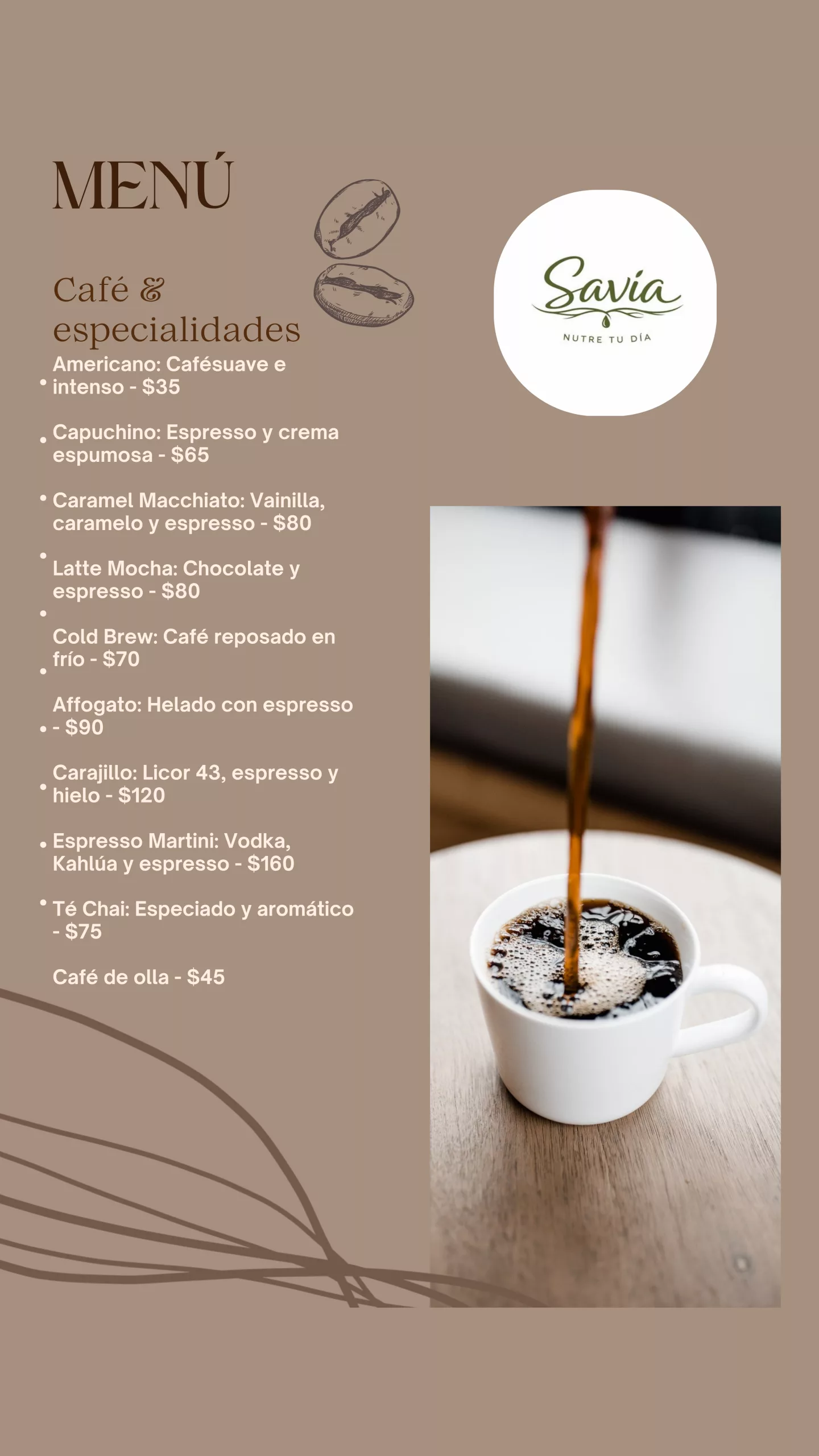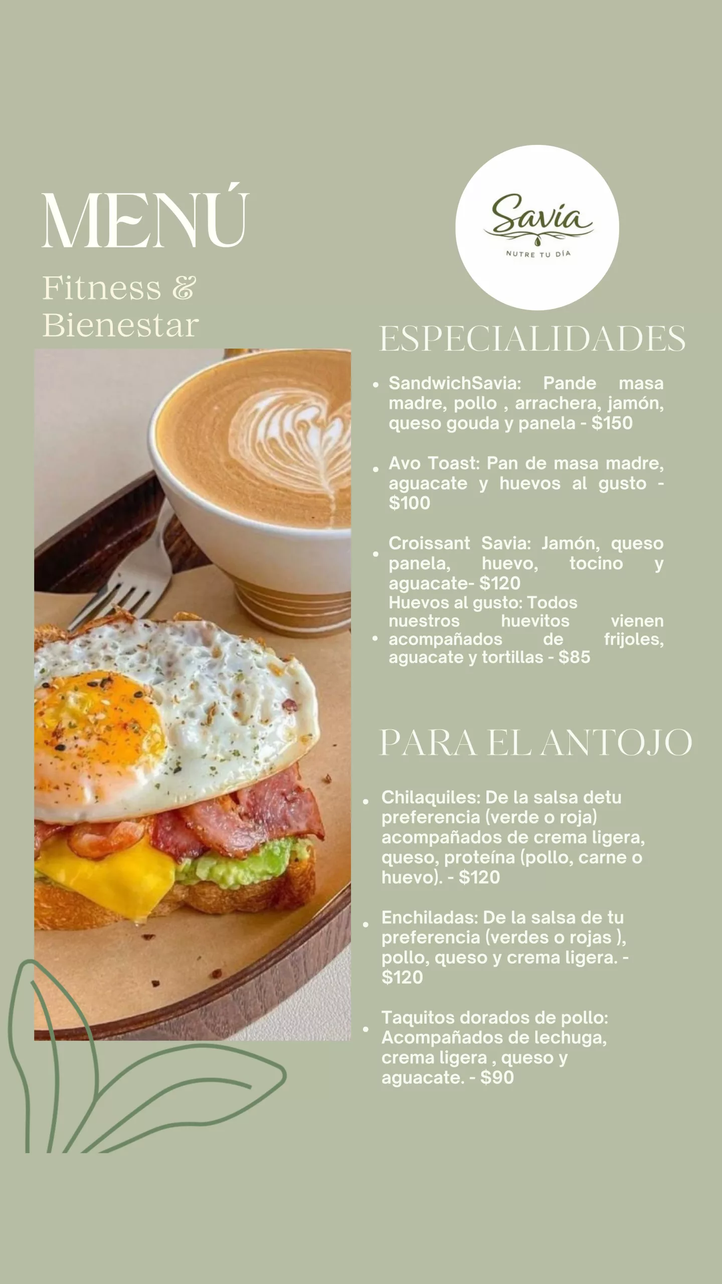 En Savia creemos que comer bien no tiene que ser aburrido. Desde desayunos frescos hasta antojos irresistibles por la tarde, cada platillo está pensado para hacerte volver. Porque sí… aquí todo se antoja.